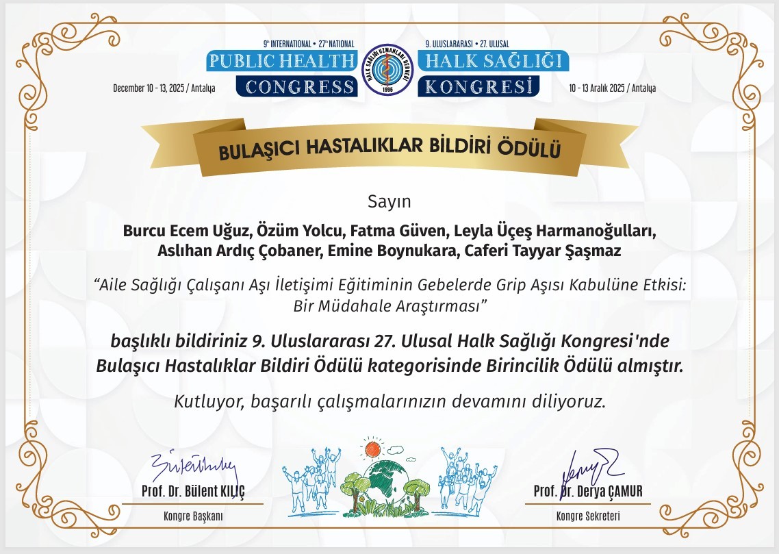7. Uluslararası Çevre Kimyası Kongresi’nden Üniversitemize Poster Birincilik Ödülü