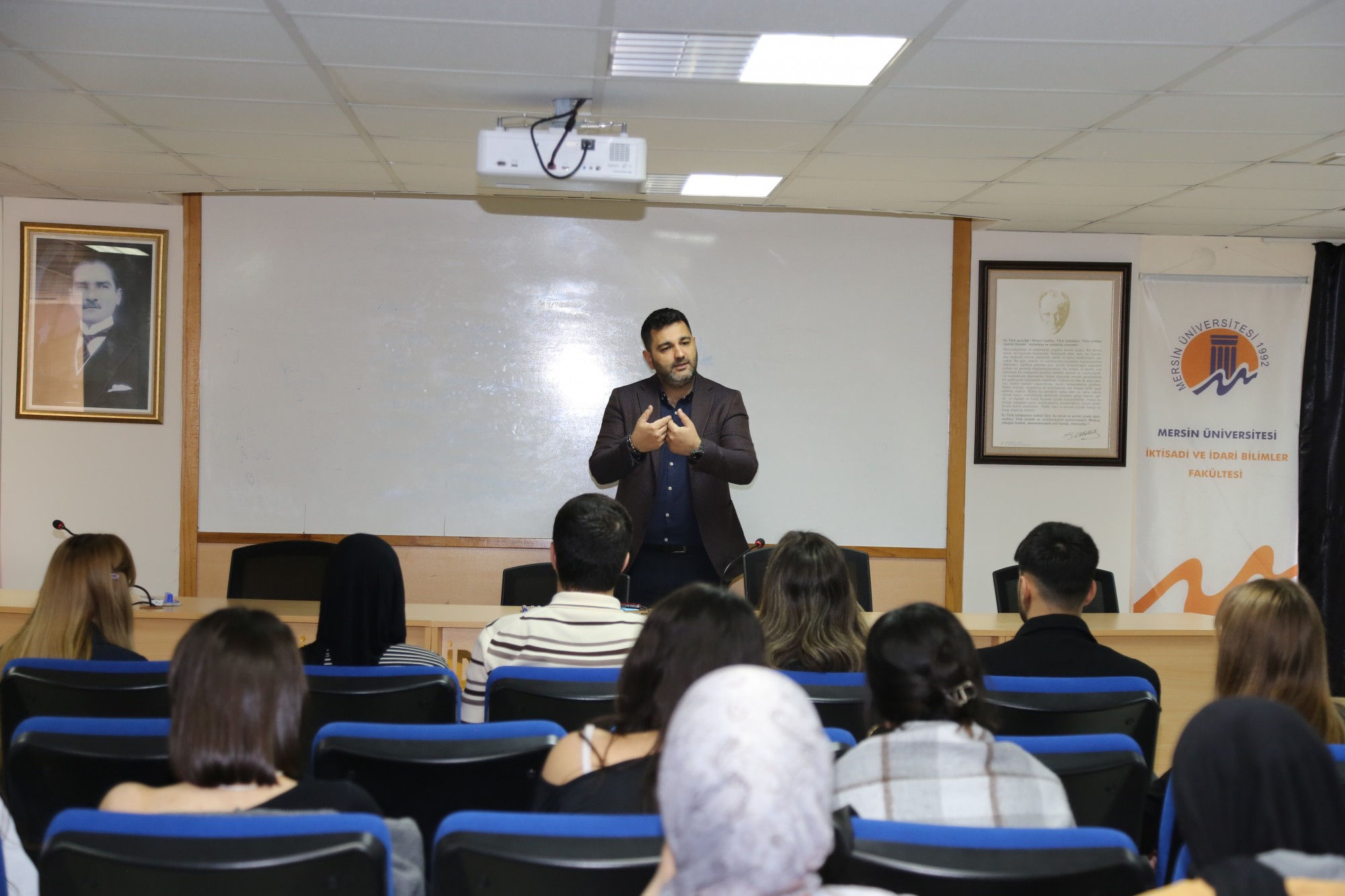 Üniversitemiz İktisadi ve İdari Bilimler Fakültesi İktisat Bölümü Mersin Sanayi ve Ticaret İşletme Yönetimi Dersi kapsamında Mersin Ticaret ve Sanayi Odası (MTSO) Başkanı Hakan Sefa Çakır’ın katılımıyla 23 Aralık Salı