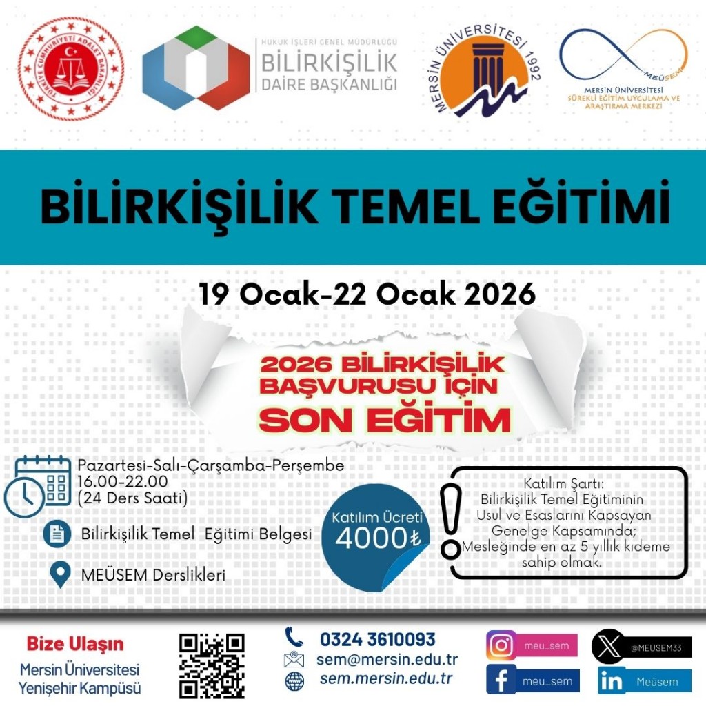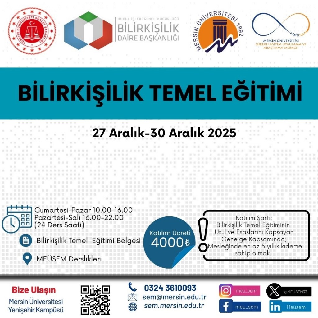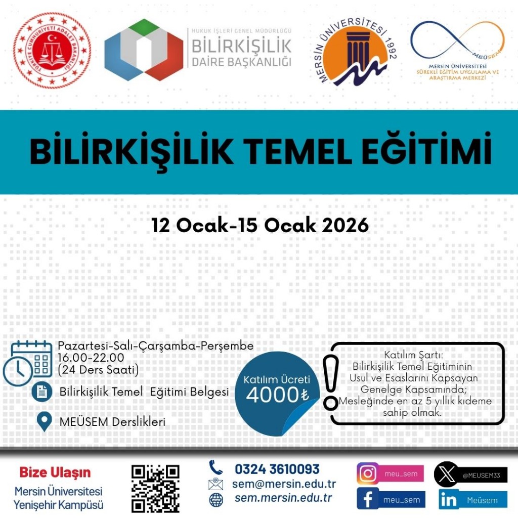 Mersin Üniversitesi Genç Girişimci Uygulama ve Araştırma Merkezi (Girişim Limanı) tarafından 02–06 Şubat 2026 tarihleri arasında “Endüstride Dijital Dönüşüm ve Yapay Zekâ Sistem Entegrasyonu Eğitimi” düzenlenecektir.